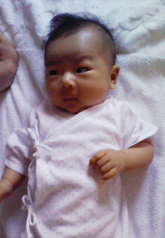 わたしのことではありません(いや 実はわたしも そうかもしれませんが?)妹の娘のマイマイです生後2ヶ月が過ぎました笑わせてくれる写真が増えてきたのでアップしてみます定位置から90度 勝手にずれてしまった 寝相の悪いマイマイ何やったら こんだけ 寝相悪くなるんだろう…哺乳瓶を 自らの手でしっかり 支えています!何がすでに こんなに不満なのかい?と思うような見事な膨れっ面 顔がでかい鼻の穴も 膨らんでいるなんで ベロだして笑ってるの!!!!最近は 高いキーの歌がお気に入り「エーデルワイス」と「森のくまさん」を 一緒に歌うらしい(ほんとか??)