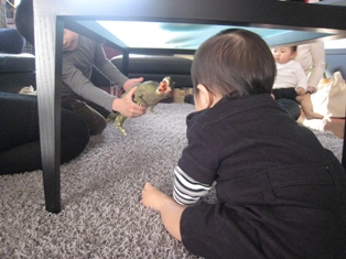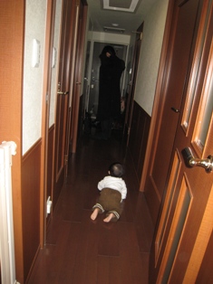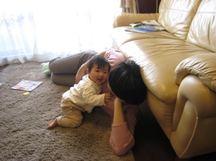 (注:ちょっとフィクション入ってます?)「パパ 待ってぇ・・・・・・」と 出勤前のパパを 追いかける まいまいその小さい後姿が ちょっと切ない…?最近は 我がモノ顔で 家中をハイハイで移動できるようになったみたいです