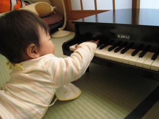 まいオバも ピアノを楽しんでいる今日この頃ですがまいまいも 相変わらずピアノを楽しんでいる 今日この頃のようですあれ~ まいまい!ピアノって つかまり立ちの練習に使うものなんだったっけ?(笑)
