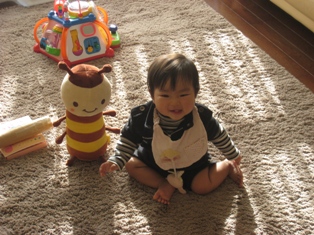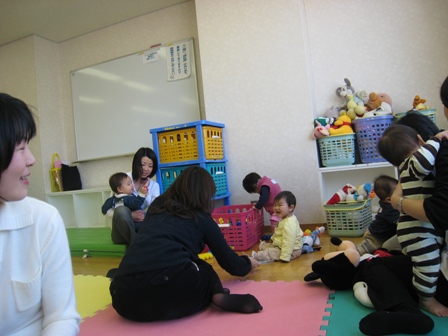 5/8生まれのまいまいは 早9ヶ月になりましたママと一緒に市民館の子育てサロンに行きましたそうしたら まいまいは ママを置いて一人でどこかへ旅に行ってしまい・・・気がついたら 他のママに遊んでもらっていたそうです他のママにも笑顔をふりまいています愛想のいいムスメだ(笑)笑顔でハイハイしてます