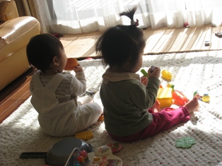 1ヵ月半ほど まいまいよりもおねえちゃんのお友達と遊んでいたら…なぜかまいまいは 対抗意識を燃やしてお友達がハイハイすると追っかけたりそのコの後ろ手に回って 髪を引っ張ったりお友達を 威嚇していたそうですイジワルな まいまいなんだか だんだん人間らしくなってきてるのかなぁ?立ち姿 見事でしょ
