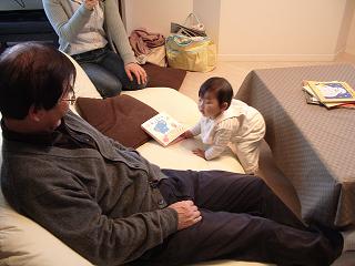 パパに すりすりしてます~パパの本も 面白そうね~パパと ごっつんこ!!番外編:まいまいと 大好きなジジジジのことを いいコいいコしてるのか~?それとも ジジの少ない髪の毛に 興味があるだけなのか~?ちょっと迷惑そうな(?)ジジの顔が笑えます