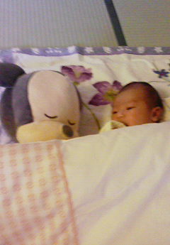 (まいまいを 自分のムスメかのように可愛がるオバ馬鹿日記です)最近は まいまいと一緒に だいぶ楽しく遊べるようになってきました!産まれたばかりの頃は まいまいはひたすら眠っているだけ…そのそばでゴロンとわたしも横になって うとうとするのも楽しかったのですが~ねんねミッキーとともに 平和な時間が流れていたあの頃まいまいはまだ10ヶ月なので まだ言葉はしゃべらないのですがだいぶ人間っぽくなってきて 性格や個性なども 出てきているようなカンジがしますまいまいは本が大好きママが本の読み聞かせを始めると ぴゅ~っと 猛ダッシュ・ハイハイで ママの真ん前へ移動ママの読み聞かせを 微動だにせずに ジーっと見つめているんですジジの読み聞かせにも おとなしく耳を傾け 興味深深!あと 歌も大好きみたいで 歌を歌ってあげるとこちらの顔をジーっと見ます歌をやめると 普通に戻るのに また歌いだすと 再びこっちをジーっと見るんです(「なんかこの人アホづらして 一生懸命歌ってるわ~」なんて思っていなかったらいいんだけど)赤ちゃんお気に入りの定番「高い高い~」をすると声に出してキャッキャッキャと笑うようになりました!!オバちゃんは まいまいに気に入られたいがために いつも一心不乱に「高い高い」をします「いない・いない・バー」をしても 声を出してキャッキャッキャと笑ってくれますよし!だいぶ まいまいのハートをつかめてきたかな自分を可愛く見せるための?アピールも上手になってきました小首をかしげて こっちを ニコっとしてみつめるんですオバはこれにも イチコロされます(笑)ソファにすりすりしている まいまいが可愛い~と言って写真を撮っていたらオバが遠ざかっても その姿勢をキープなんて サービス心旺盛のコなのかしら~(笑)機嫌がいいときは 可愛らしい小声で 「パ、パ、パ・・・」というようになりましたでも 「ご飯が足りないよ! 早く食べさせてちょうだいよ!」 と大クレームをするときはびっくりするくらい大きな声で 「マ・マ・マ・マーーーー!」と騒ぎ出します...。妹(=まいママ)が嘆いて「機嫌がいいときは『パパ』で、機嫌が悪いときは『ママ』なんてさーー」最近は 成長が特に著しく 会うたびに毎回違うくらいに感じそれもまた 楽しみですこれから どんな女のコになっていくのかな
