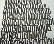 年明け早々ご無沙汰しました。。ブログを忘れ、ちょっとのんびりしていました。笑 ■ ■ ■お正月に食べたケーキ。。↑♪♪またひとつ歳をとってしまいましたョ。。ほほほッ。。;) ■ ■ ■今年はカリグラフィーの勉強をがんばる!・・ということで、こつこつとがんばり始めました。今習っている『イタリック体』(・・実は2年越し!笑)をnarrow(幅を狭く)+ブロックに書くという内容。これ↓が。。 こう↓なって。。 それからこう↓して。。 こう↓進化するのであります。。 ちなみに全部同じ文。(読めなくて良いのです。練習文だし・・。)使ってるペン幅も、文字の高さも同じ。。(最後4枚目の細い文字だけは細いペン先を使ってます。)次の授業で、まだまだ進化するんですって~!(イタリック体でこんなテクスチャーが書けるなんて・・。)これを使って作品をはやく書きた~~ぃ!!><・・って、気持ちばかりあせっちゃいます。でもあせらず毎日続けることが大事なんだよね。;)むむ。がむばるぞ。。 ■ ■ ■仕事は、、。先週泊まりで静岡に出張してきました。2泊のはずが最終電車に間に合わず3泊に。笑3日間とも天気が良くて、白く雪をかぶった富士山がとってもきれいに見えました♪仕事もなんとか順調にこなし、現地入りしているスタッフと連日飲んで。。笑そして来月からはまた次のプロジェクトに参加することとなりました。(今のプロジェクトは3月末まで、つまり同時進行です、、。苦笑)ようやく自分のペースを掴めてきたので無理せず、仕事もがんばらなくちゃです。:) ■ ■ ■それから。。ハイビスカス!!こちらは今ビニール温室にてお休み中。暖かい春が待ち遠しいです。。つぼみを残しておいた『キーライムパイ』。↓変わった色で咲きました。;) 残るつぼみはあとひとつ。。切花で咲かせちゃおうかなー。 ■ ■ ■さて。また何か写真が撮れたらUPしますネ~。:)(確か水仙のつぼみが出てきてたゾ。)