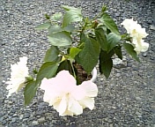 一ヵ月半ぶりのUPです。何から書いていいのかわからないくらい仕事がばたばたとしていて、気付けば10月・・なんですね。先週末でようやく仕事が一段落し、来週にはやっと仙台をあとにします。(今週は一週間自宅での仕事ですが。。)今後は今まっでよりもゆっくりとしたペースで仕事を続けて行く予定。。なんとかなるかなぁ・・。笑■ ■ ■今年初め、冬の終わりから始めた畑仕事は挫折してしまいました。収穫が出来るようになった時期からの出張はやはり無理があったみたい。。今はすっかり荒れてしまい、畑への入口も雑草や竹でふさがれ、全く手がつけられなくなってしまいました、、。でも。。どうしてもまた復活させたいので、来月中に一度、機械で草刈をしてもらってそこからまた始めるつもりです。今度こそ、仕事と畑の両立をしたいな。。:)■ ■ ■さて。ハイビスカスの話を、、。ハイビには気持ちのいい季節となってたくさん蕾が膨らんでいます。いいタイミングで週末に咲く花はそう多くはなかったけど、写真は何枚か撮り続けていたので少しずつUPしますね。先ず先週末の『クラシックホワイト』。↑&↓ひとつの枝からは次々赤い蕾がでるのですがなかなか開花しません。。一度に3つの花が咲き、赤い蕾がひとつ・・見えるでしょうか。?↓(中央上のちょっと右側。) ■ ■ ■『ブーゲンビレア』は四方に枝が伸びて鉢が不安定に・・。なので先月末に剪定&植替えをしました。この時期にしていいのかわからなかったんですが、気温が下がる前の暖かい時期のほうがいいのかなと思って。 鉢から抜いたところ、根がぎっしり詰まっていました。↓ 初めての植替えなので、ひと回り大きな鉢に根っこは崩さずにそのまま植えました。そのあとバランスを見て剪定。バランスを見て・・って言ってもどこを切っていいのかわからなかったので、ネットで調べて見よう見まねです。(^^; 2週間近くたちましたが、葉っぱも元気。暖かい日差しに元気をもらい、なんとか冬が迎えられそうです。■ ■ ■昨日、『プリン』が2つ咲きました。夕方撮ったのでピントがあやしいです。↓ しずくのアップが上手く出来ません~。(^^; ではまたです。ん?外は雨が上がって明るくなってきました。;)♪