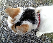 昨日ちび猫がきました。隣りのおばさんが、そのまたお隣のおうちに迷って(捨てられて?)きた子猫を抱いて我が家に来たのです。「ここのうちだったらねこがスキだからなんとか飼えないかな、、。」と。私はちょうどお出掛け中だったのですが「(家の中では飼えないので)外でなら。。」と、面倒を見ることにしたそうです。姪っ子は、いらないダンボールと自分のタオルと、それから木の板に自分で考えた子猫(男の子)の名前をマジックで書き、事務所の玄関わきに居場所を作ってしまいました。。笑どこかで飼われていたみたいで人間が近づいても逃げないの。いまはダンボールの中ですやすやお休み中。keiはというと、、。 一緒にご飯を食べたりして今のところケンカはしていないみたい。ちび猫の様子を伺ってる・・のかな。:)■ ■ ■久しぶりにカリグラを再開しました。今年度から始めた月一回の装飾クラス、7月9月とお休みしたのですっかり遅れてしまいました。なんとか途中までやった宿題。↓作品用紙にトレースしたので、あとは色塗りして完成です。(トレース途中の写真。) これを含めて全部で4つ。仕上げなくてはならない宿題がたまってます~。。(^^;■ ■ ■ 『ツワブキ』がきれいに咲いています。;)♪■ ■ ■今週中ごろから最低気温が下がりそうですね。そろそろハイビも冬越の準備をしなくては。。今年は簡易温室を日当たりのいい屋外に置こうかな、と考えています。今までのように家の中(2階)ではいろいろと大変なので。。