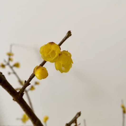 近所の友人の庭からロウバイの枝がやってきました。