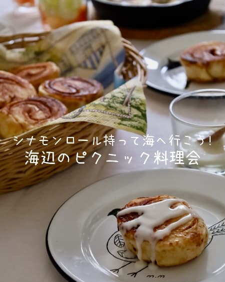海辺のピクニック料理会 シナモンロール持って海岸へ行こう