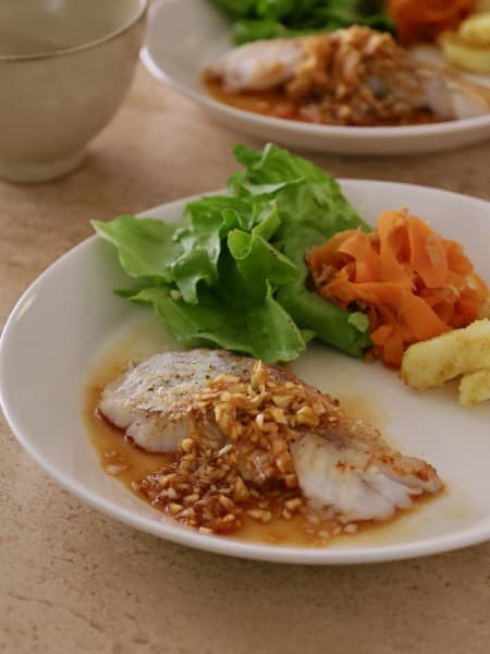 先日は白身魚をパリッと焼いてピリ辛のねぎソースをかけて。