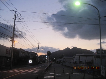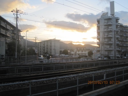 福岡市の日照時間 年月日 曜日 日の出 日の入り 気温 起床 備考2013/2/1 金 7;15 17;48 9 4;40 2013/2/2 土 7;14 17;49 10 2;30 2013/2/3 日 7;13 17;50 5 4;40 節分2013/2/4 月 7;13 17;51 9 3;55 2013/2/5 火 7;12 17;52 5 4;40 2013/2/6 水 7;11 17;53 8 3;15 2013/2/7 木 7;10 17;54 4 5;20 2013/2/8 金 7;09 17;55 -2 3;45 2013/2/9 土 7;08 17;56 0 4:43 2013/2/10 日 7;08 17;57 6;35 2013/2/11 月 7;07 17;58 6;05 2013/2/12 火 7;06 17;59 2 2:00 2013/2/13 水 7;06 18;00 3 3;40 あすへのことばを残そうとするのは、自分の遺伝子を残そうとする人間本来の本能に由来しているところもある。今日の日没時間が福岡市では18;00になった。2013/1/3木7;2317;2214;10日の出最遅日比較してみると面白い。日照時間は、55分間も長くなっている。 これでも一日を自分に相応しい時間にしようとしているが、想いがどこまで伝わっているかまったく自信はないが、それでもブログを視てくれている人がいる限り続けたいとは思っている。色んな社会状況があり、個人的都合もあるのだろうし、出来るときしかできないことはあるに違いないが。 ・へ2・・・最近ラジオを愉しんでいる。語学の時間が楽しい。それほど勉強している訳ではないが、聴いているだけでも楽しい。日本語を聴いているだけかもしれないが、なんとなく穏やかな気持ちがする。写真とか、ウオーキングとか、食事も、自分なりの勉強もある。大学を卒業した時も数年間田舎でぼんやりしていた時があり、暢気なお前が羨ましいと言われたが、リタイヤしたあともこうした時間が私にはあるのはラッキーでもある。自己満足かもしれないが、時代にスポイルされないように生きていたい。