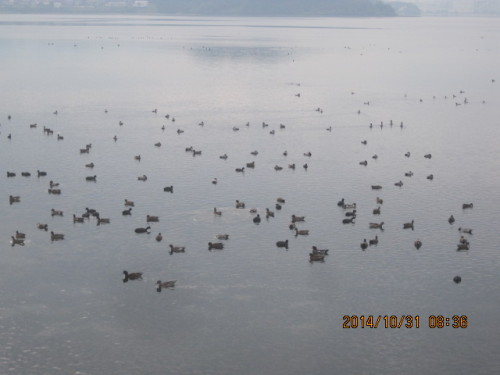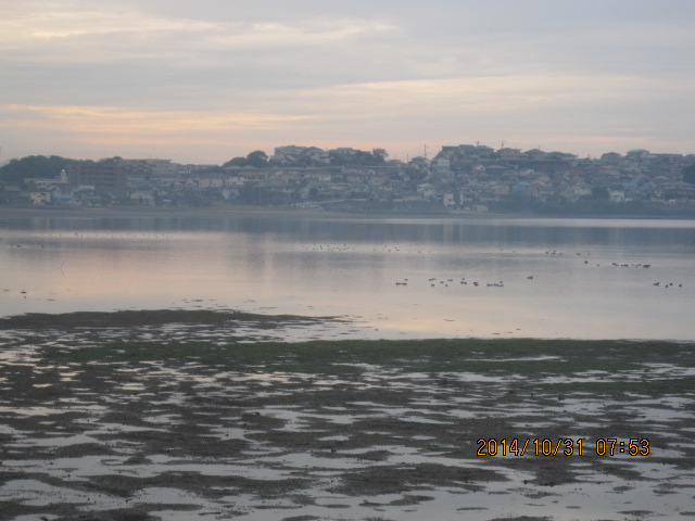 >2014.10.31.8;43 和白干潟に隣接する奈多の貯水池。 日本には、数百羽しか来ないと言われている。偶然探鳥会に参加して、野鳥の話を聞いて、ウオーキングを兼ねて写真を撮りながら観察を始めたばかりだが、今年になって14回目の8羽のクロツラヘラサギを見つけたが、若鳥が混じっていたようだ。すでにスズガモの群れを含めると数千羽近くの渡り鳥たちが見られるようになっている。渡り鳥たちの渡来のシーズンが始まっている。和白干潟には、絶滅危惧種を含む珍しい野鳥が見られる貴重な干潟でもある。 ・福岡市の市長選が始まるが、どのひとも和白干潟にはあまり関心がないようだ。ひとのいのちは大事であるが、それは周囲の環境が守られてこそ持続可能な社会が維持されるのであり、小さな動物たちを守れないようでは文化レベルが高くはない。福岡市は自然保護にはあまり熱心ではないとの評判である。人工島(アイランドシティ)も地域住民の反対を押し切って造られた。 ・へ2・・・博多湾は、平均10メートルもないあさい港湾であり、人工島周辺は平均5メートルしかないと言われる。海底はヘドロの海になっていると言う女子大の研究チームの報告があっていた海域でもある。残された和白干潟の存在価値は小さくはない。そこへ毎年数は半減しているが、渡り鳥たちがやってくる。汚れた海域でアオサや汚染されていく干潟で餌となる小動物たちが激減していると言われている。いつまで、渡り鳥が来てくれるのだろうか。
