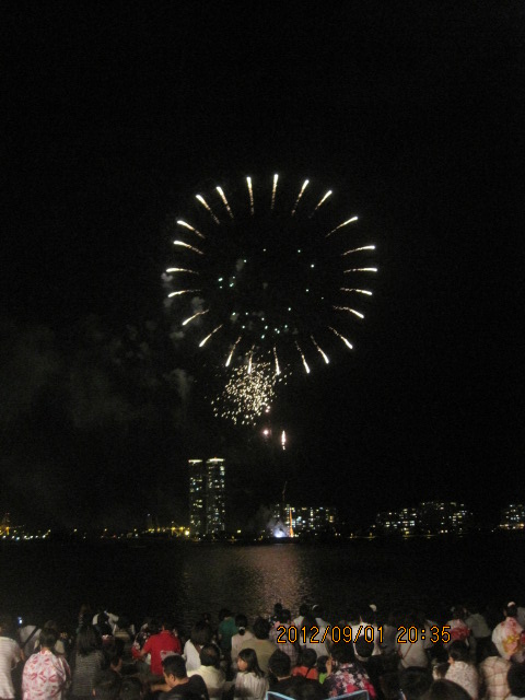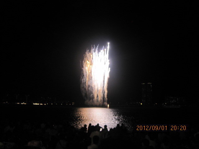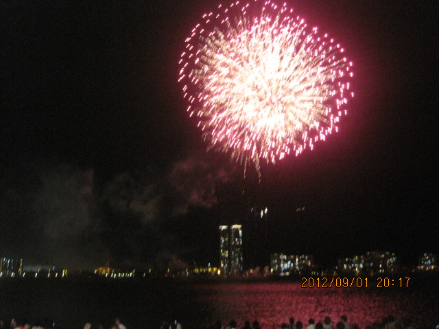 一瞬の花火のように 花火のように、と喩えられるものはたくさんある。ビックバンから始まったと言われる宇宙の膨張もある。闇の中に突然現れて、やがて闇の中に消えていく。次々に花火は打ち上げられて、前の花火を忘れてしまう。すべては一瞬の花火の如し。 遠景は、人工島だが、彼岸のようでもある。向こうから見ればこちらが彼岸だろう。その中で花火は打ち上げられていく。今年は今週の土曜日に開催される予定らしい。毎年見に行っている。夏の終わりにある花火大会で年々盛大になるようだ。福岡でも珍しく人口が増えている地域でもあるからだろう。 まさかがいつも付き纏うから、安倍政権も突然消えてしまうのだろうが、それまでは夜空には花火を打ち上げるのだろう。神風を信じている人たちは、そして大いに失望するのだろう。アベノミックスは影が薄くなっているのではないだろうか。 Do I make myself Clear?