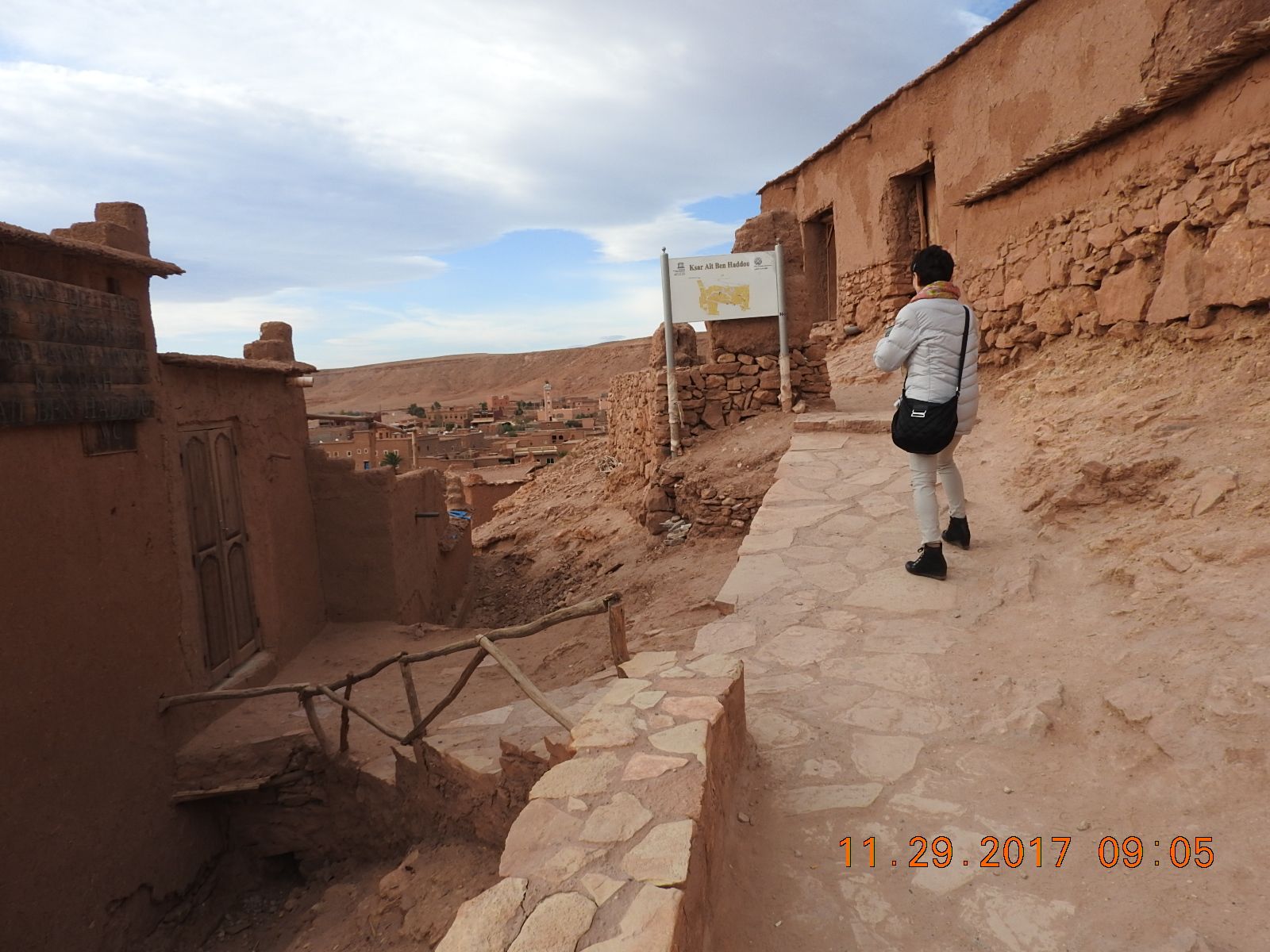 クサール・アイト・ベン・ハッドウ 参加者30人は、殆ど旅行者下痢症でした。水は、気を付けているつもりでしたが、やはり食べないわけにはいかないし、持参した日本食が何とか役に立ちましたが、それでも食欲がなく、体重が5キロ減りました。からだは快適とはいきませんでしたが、ツアーは、刺激的でした。やはり行ってよかった。ヒト脳が、宇宙と比較できるくらい広大な未知の世界だと知って思うことは、自分自身が世界 を小さく見ているのだ。そういえば、子どもの頃、遠くに見える山の向こう側は外国だと考え ていた。それから、徐々に自分の世界は拡がったが、まだそれこそ「井底の蛙」なのだろう。 生半可に知ったくらいのことで、社会が分かった気がしたりしたが、所詮針の穴からでしかな い。自分の二つの目は、見ていても本当に真実を理解しているとは言えない。四書にしろ、こ れまで一般論で、また少し読んだくらいでもう文化の遺物ではないかと断じたりしたが、今、 よく読んでみると含蓄があり学ぶべきことはまだ多くある。 所詮、蒙昧でしかなく、本の蟲になるだけだろうか。それこそ「汝らこころを上げよ」だろう。 これまで、まじめに真理を求める先人は迫害されたのだ。過酷な運命を生きてもいる。そうしなけれ ばならなかった。現在でも安易に得られる情報など大したことはない。ヒトの進化は、デッドロックを乗 越えた。それほど誇り高い種。平坦な人生など取るに足りない。