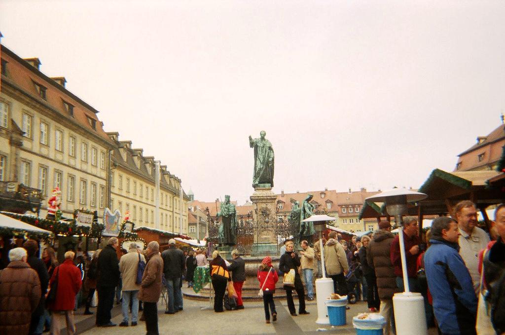 ・現地ガイドはドイツ人の中年の上品な背の高い婦人だった。彼女は、英語しか話せないとのことだった。恐らく、日本語のできる現地ガイドを予定していたのだろうが、それで手違いの原因にもなったのだろう。搭乗員が英語の通訳をしてくれたが、どうも、現地ガイドの説明がかなり省略されているように思えた。直訳なのだ。言葉の壁は、意外と大きい。それでも地元のドイツ人に案内して貰うのは、この「バンベルク」の地を愛する愛情が籠っている感じがした。それは新鮮で良かったと思うし、観光には大事なことではないだろうか。私たちは、バンベルクの旧市街を歩きまわり、まあ英語がそれ程上手くもなく、よく分からないなりに愉しかった。それこそ解説がなく黙っていてもその存在だけで古い遺物は語りかけてくるものがあると思った。そして、ここでも、クリマルをやっていた。カップを探したが見つけられなかった。時間がなかったこともある。残念。 <感想> ・世界遺産「バンベルク」もどうも、見るところが多くて、それこそ各地を見学しながらよほど勉強して来ないと間に合わないと反省した。ただ見るだけのことと思っていたがどこも奥が深いというか。できれば数年でも滞在して周りたい位な思いがします。朝からどこかのベンチに座って夕方まで見ているだけでも日本にいるときの数倍は利口になるのではないだろうか。殊に、領主司教のゲープザッテルの新宮殿の「バラ園」のバラを見たかったですね。そこからのランドスケープが素晴らしかっただけに、どんなにか薔薇の華麗さが引き立つだろうか、と思いました。歴史のあるバロック様式の建物が見られました。現地ガイドの女性も気さくな女性で、案内してその人の人柄がわかり好感がもてました、ツアーで一緒だった女子学生がドイツ語を勉強しているらしく、彼女にドイツ語で話しかけているのを傍で見ましたが、その女子学生より、少し照れながら、その会話を誇らしげに見ている母親の顔が輝いてみえました。いいですね。母娘でドイツを旅行。こういうシーンは、私たちまで明るい気分になりほんのり心が温まりました。 「バンベルク」(約100キロ、約1時間30分)「ヴュルツブルクへ」 <感想> バスはアウトバーンを走りましたが、雄大な田園風景でした。広告看板もなく、人家も点在しているくらいで、自然に溶け込んでいるような、まさに、のどかな風景でした。ドイツ人の何か、自然に対する思いが込められている風景ではないだろうか。こうでなければならない田舎のコンセプトがドイツ人にはあるのではないだろうか。それを大切に守っているのだと思う。余計な広告看板など本来要らない。