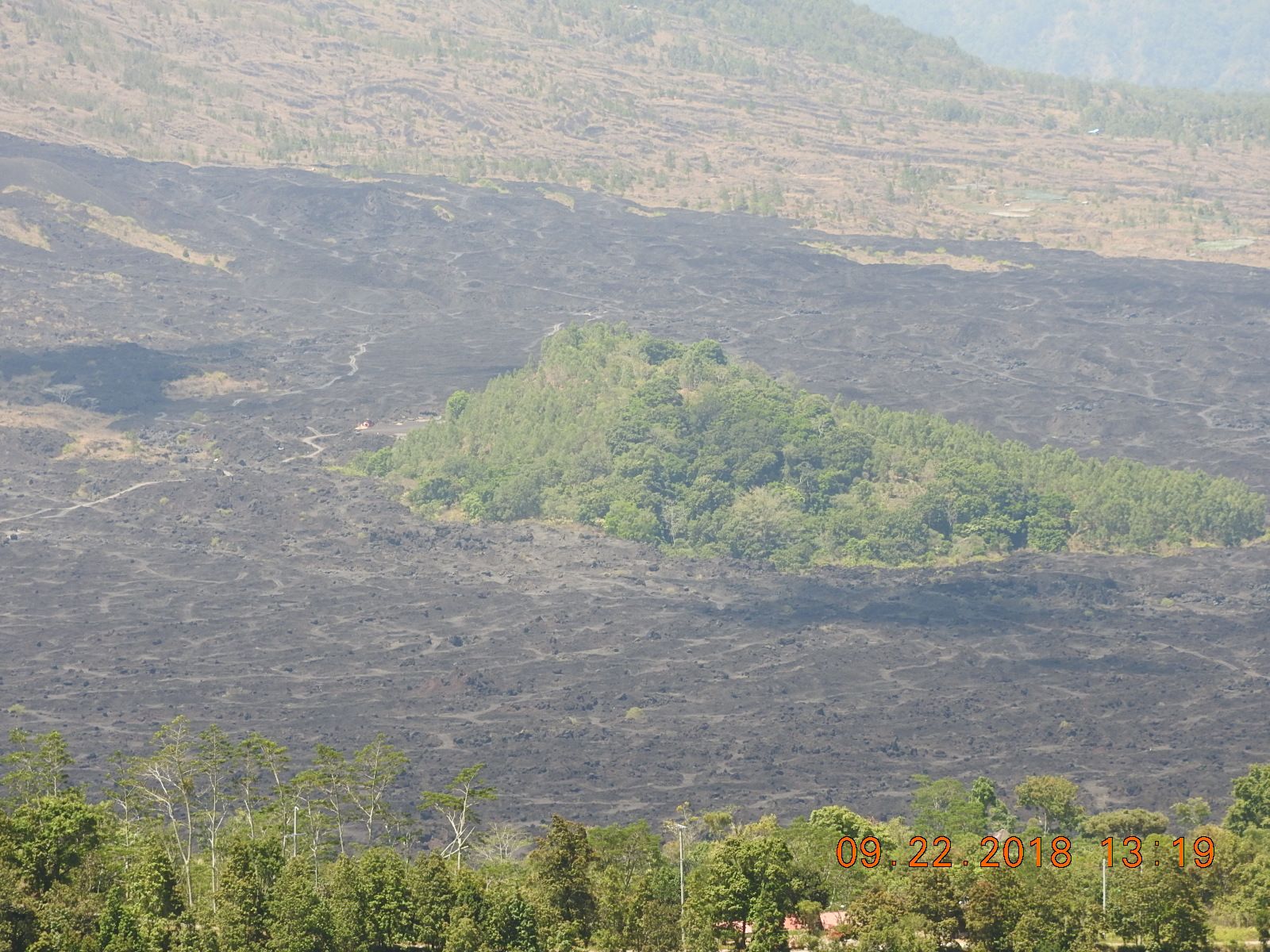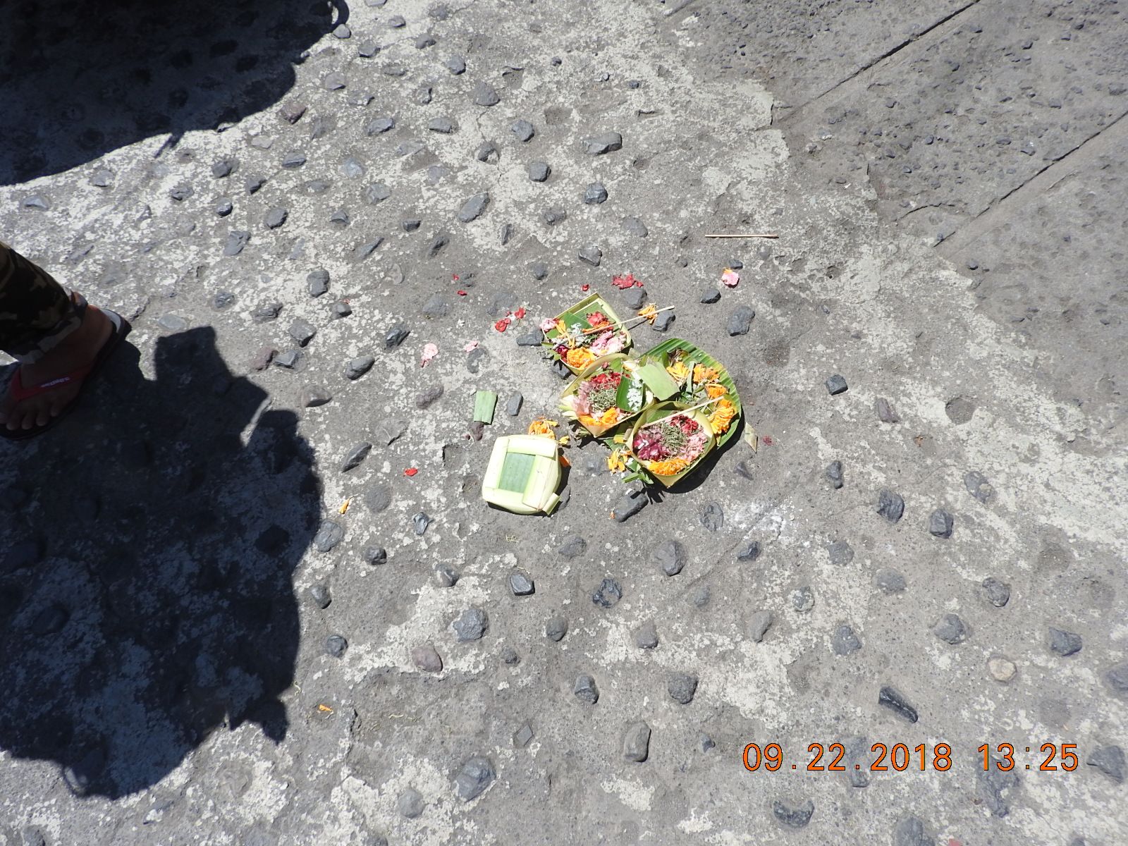 溶岩流の痕跡と店や家の前に毎日清めのためにされるチャナン。