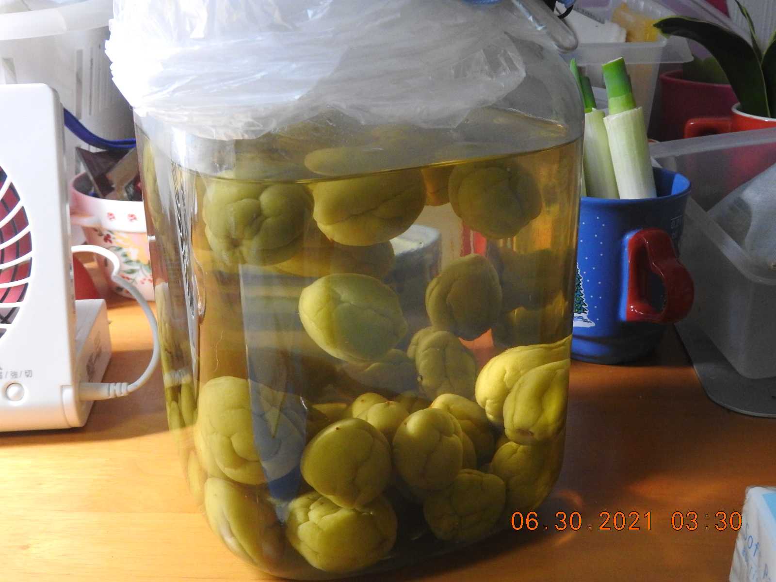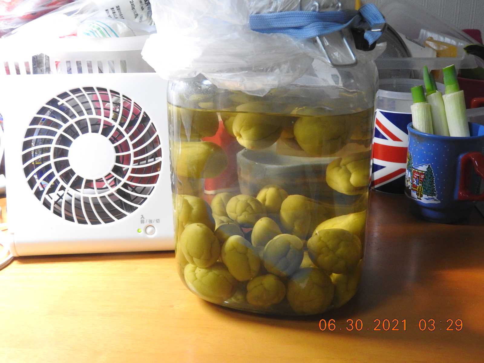 今が収穫期のミニトマト。梅酒は、1カ月経過。