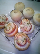 たるんでます今日はオヤジは出勤ですが・・お弁当はなし給料後だし・・今月は小遣い自主返納()もないので・・何か好きな物でも食べて下さい・・たるんでいるのは・・アタシの肉ではなくて・・坊ちゃまですまったく・・高二って中二と同じで・・なかだるみなんですかね毎朝ギリギリのギリ子で困ってましたが・・遅刻がついたら、ぶっ飛ばすでなんとか間に合っていたんですが・・おととい・・地下鉄の車両交換とやらで、乗り換えがうまくいかず・・始業時間を1分過ぎてしまったそうです8時20分授業開始で・・ホームルームはなく・・いきなり、教科の先生がやってきます車両交換だったので「遅延証明」が出ていたんですが・・なめくさって・・もらわなかったとたまたま、担任の授業だったので・・交渉の結果・・遅刻はつけない・・となったらしいですが~つかないのに・・なぜ・・親の署名入り書類を出す怪しいですそして・・いつもカバンの中にあったUSBもないどこを探してもないない学校で使ったらしいのですが・・どうやらPCにさしたまま・・らしい・・という結論ゲームのデーターなんてどうでもいいですが・・部活の資料やらなんやらも入っているみたいなので・・どうするんだ人を疑うわけではありませんが・・あんな物・・ちゃんと返ってくるとは思えません名前なんて書いてあるわけないしね・・まだ、寝てますが・・最近の様子を見てるとたるんでるとしか言えませんさて・・愚痴は終わって・・パンです・・チーズロール丸パン(ミルクバターで食べる)コロコロチーズをたくさん巻きこんで~マヨネーズとパセリをかけましたそれと・・抹茶シフォンとこれまた・・ハム・オニオンパンです・・ハムを巻きこみ、炒めた玉ねぎととろけるチーズ・カレーマヨをのせ焼きました最近、ホイップをはさんで食べるのがお気に入り~でも・・小豆に粉をまぶすというひと手間をはしょったため・・小豆が沈んでしまいました・・あっ、逆さまにしたからあがっちゃった・・になるのか今日は暑そうだから・・プリンケーキでも作ろう朝日を浴びて・・何を思うちゅな坊・・君が一番かわいいよ・・