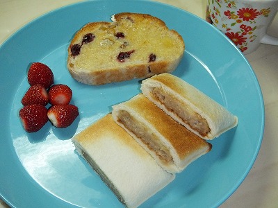 おかずだけですが・・何か夜中から明け方にかけて・・・・・・・何回も・・・・・・・「あ・・お米セットしてない・・」「ご飯炊かなきゃ・・」と、うなされるようにして思うんですが・・体がね・・起き上がれないんですよ今朝は、「よし高速炊飯で間に合うだろう」とたった1合のお米を炊きましたが・・オヤジの出勤する時間で「あと4分」表示「パックのご飯でも買ってね~~~」とおかずとスープだけを持たせたわけでありますメカジキのから揚げウインナーミートオムレツたまごスープ「いいじゃぁ~ないのっ」ですよねぇ・・誰も「ダメよぉ~ダメダメ」とは言わないですよねぇパウンド・・朝ごはん・・・いただき物のパウンドケーキとトーストでございました・・銀座・千疋屋のストロベリーホワイトチョコケーキ・・・・自分の味に慣れてるので・・・ん仲良しコンビ!ボク・・翔ちゃんはね・・かわいいんですけどね・・・ちゅな坊に喧嘩ふっかけるし・・ダイちゃんとも喧嘩するしね・・困ったちゃんです・・怖い物なしなんだなぁ