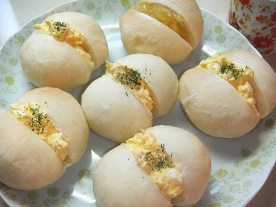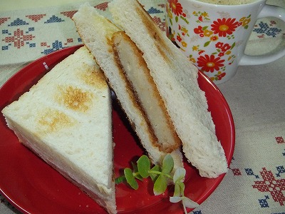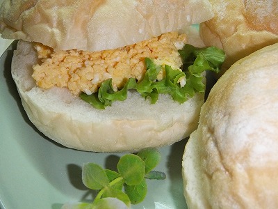 スクランブルエッグサンド白パンにスクランブルエッグと生ハムをサンドしまして・・大口開けていただきますっ・・今日は従兄の告別式でございます・・早いので・・行ってきます・・今日もお留守番です・・・・・・まったり・・・・・・
