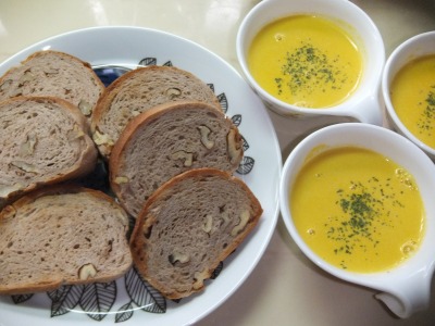 スパイシーくるみパン昨日の朝ご飯・・大リス坊ちゃまの好物、くるみ入りのパンとかぼちゃスープスープはかぼちゃフレークと牛乳と少しの塩で作ります・・あとはイチゴでゴロン・・坊ちゃまは土曜の夜遅くに来たので~この朝ご飯しか食べないかなぁ・・と思ったんですが~帰る直前にお昼ご飯外だと電車の時間があって慌ただしいので~家で簡単に豚丼とほうれん草の味噌汁とサラダをお召し上がりでした・・極暖のタイツとかちょこっと朝ご飯にもなるようなクッキーを持たせ、駅まで送りました今朝は無事に起きて・・真新しい極暖タイツをはいて出勤ですまぁ、こっちの残雪に驚いてはいましたが~気温はやっぱり諏訪の方が低いようで、あんなに言ってもはかなかったタイツをようやく着用・・「極暖ラブ」になっております・・ほれ・・ほら・・この通りでございまして・・・・生活道路の中央部分の雪はなくなってますが、側溝や端には雪山北側の日陰部分はガリガリ君・・1週間経ったんですがねぇ・・この上にまた、木・金あたりにも降るって畑の大根も地上部分は凍ってます朝の気温は-7℃~-4℃の連日・・パピヨンズのお散歩は少し遅めじゃないと出られないので、朝の半端な時間ができちゃいます・・(ご飯もまだだし・・洗濯もまだ・・)今朝・・そんな時は~こんな事~~~ミモザのドライを買ったのでね・・でも、取り扱い注意です・・葉っぱがポロポロっとまぁ、こんなに作りためてどうするのってかんじですがねぇ~さてと・・おトイレに行くのもお風呂入るのも覚悟がいるほどに寒いけど~動かないとなぁ・・