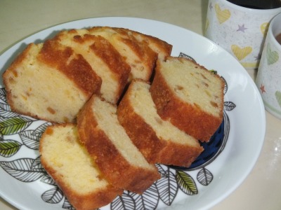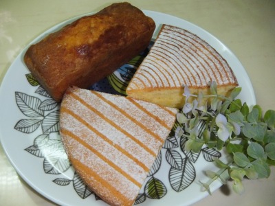 オレンジケーキとカトルカール昨日は今年初のケーキ教室バターケーキ2種・・(持ち帰りの分け前)オレンジピール入りのオレンジケーキとカトルカールこれね・・「粉・バター・砂糖」がすべて同量ずつの配合なんですが、どっしりしっとりのオレンジケーキとフワフワの軽い食感のカトルカール・・化学の実験ではないですが~違いを知るというか・・試してビックリというか・・面白かったですよ試食タイム美味しい紅茶と一緒に試食タイムです昨日は体験の方が二人いたので、人数も多くて賑やかでした持ち帰り分のオレンジケーキは隣りへ嫁入りしたので~早速、復習~焼けた・・これね・・焼き上がりの熱いうちにシロップ(砂糖・水・リキュール)を打ち、ラップで密封そこが、驚いたところでね・・だいたいは「あら熱を取って」なんだけど、この方が空中の雑菌もつかずにいいんだそうです・・水滴も心配だったんですが、一晩経った今現在・・キレイな状態でラップに包まれてます今日のおやつタイムにいただきます夕飯は・・賞味期限の都合により・・うどん・・なので、野菜の天ぷらを少しばかり揚げまして・・前夜の残りの牛スジ煮込みと・・・ちゅな坊・・必死です・・かなり欲しいです・・カトルカールがお気に入りのようです・・特に好きだったわけではないんですが・・小室哲哉さん・・引退なんですねぇ・・まぁ引退されても楽曲は耳にするだろうし・・話題には事欠かないかとは思いますが~~誕生日がね、一緒なの・・アタシと小室氏と松下幸之助・・(すごいメンツだと思わない)それにね・・TVなんかで「KEIKO」って連発されてますが・・実はアタシは「KEIKO」なんです・・ついつい、目と耳がそっちを向いちゃうかんじなんですが・・不倫また、文春不倫は肯定しませんがね・・大人の・・そんな事情・・いいぢゃん、どうでもと思うんですよねぇ・・たしかに話題にはなるんだけどさ・・文春って何と思うんですよねぇ・・ベッキーもそうだったけど・・・・・・「引導渡し」が文春なのかねぇ・・あぁ、芸能人じゃなくてよかった~と思ったのでした