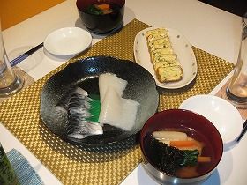夕飯は・・お雑煮・なまもの・出汁巻き・・