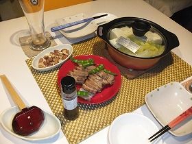 夕飯は・・煮豚を作っておいたので、小さな鍋で湯豆腐・・・・