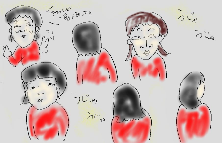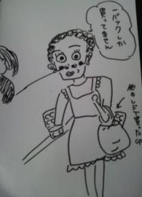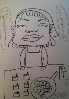 先日、書いたスーパーの女達 卵編 シリーズ1では(いつの間にかシリーズ化)たくさんのコメントが寄せられやはり、スーパーでの行動パターンは全国共通なのだと思いました。今回は「試食コーナー」を特集してみたいと思います。試食コーナーは騙し合いです。食うか食われるか・・買うか・・・買わされるか・・・ス―パーではこんな風景を見かけます今晩のおかずになりそうな手軽にできるものをその場で作り、配っておられます。意外と、ターゲットにされるのが子供です。子供は素直にいい臭いのする食品に近づき試食品をゲットします。そして、「ママ~~~!これ美味しかった!これ今日作って!」と母親にねだります。これが試食コーナーの売り子さんの狙いです。けれどそうは問屋が卸しません。消費者も食べた=おいしかった=買うではありません。財布のヒモは硬いのです。調理法などさんざん聞くだけ聞いて食べるだけ食べて去っていく「聞いただけ食べただけタイプ」食べたはいいが買う気はなく、状況をみて人ごみに紛れてドロンする人もいます。「いつの間にかドロン忍者主婦タイプ」そしてこのようなタイプの人がいます!買うと見せかけて・・・「買うと見せかけて、角を曲がるとポイ! タイプ」かなり悪質なタイプです。うちの母です。(大きな声では言えませんが・・)その他にも最初から試食しないタイプや食べたら買ってしまうタイプなどいろいろあると思われますが皆さんはどのタイプでしたか?汚い絵でごめんなさい。><