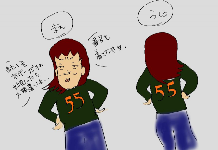実は私、ある服にトラウマがあります。今から6年ほど前の話です。このように、松井秀喜選手を連想させる「55」の番号が前も後ろも入った服を着てスーパーへ買い物へ行きました。買い物をして帰ってきたのはいいものの家に帰ると娘のオムツをレジに置き忘れた事に気が付きました。今ならまだ間に合うはず!私は小さな娘を連れて走りました。そしてようやく買い物をしたそのレジに辿り着くと私に気が付いた一人の店員さんが「あ、いらっしゃった!いらっしゃった!55番のお客様!」と、思わず口にされました・・。そしてその店員さんは私に「55番」を聞かれた為しばらくバツが悪そうにされていました。・・・でも、私は見逃しませんでした。置き忘れて行ったオムツにも「55番」と書かれていた事を・・以来、ボーダーは毎日のように着る事があっても背番号のついた服は二度と着ないと誓うのでした・・・。にほんブログ村