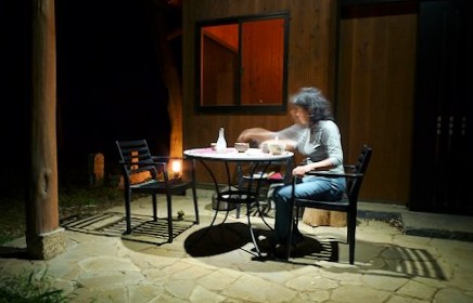 毎日爽快な秋本番である。朝は小鳥に起こされて、鶏達に餌を与える。給餌が済むと、畑から野菜を採って来て朝食を作る。テラスのテーブルに運んで、ゆっくりと朝食を摂る。そしてお茶を飲みながら新聞を読む。テラスでは食事と共に四季折々の季節も味わえる。真上にあった太陽が傾いて陽射しが優しくなり、空気は爽やかである。長かった夏から解放されてテラスから見えるログハウスも優しく見える。