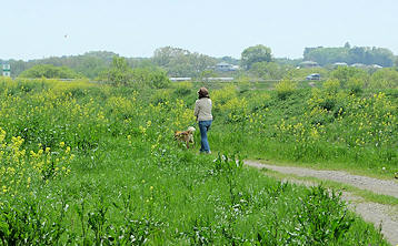 妻のリハビリのために近頃は昼に散歩をしている。土手の花が今年は例年よりずいぶん遅れて満開となった。草たちは20日ほど前に芽吹いたばかりである。遅れを取り戻すように日一日と大きくなり、みるみると薹が立って花開いた。木々の芽と草たちが一斉に育つので、この時期の景色は絵を毎日描き替える様に変わる。桜が咲くと、枯野は一気に緑の野と変わり、そして花園となる。とても気持ちの良い伸びやかな春のひと時である。