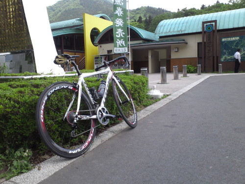 土日出勤だったもので、代休です。今週末富士ヒルクライムに出るので調整がてら道志村まで。坂を上っていたところ・・・バイクVFR400Rに乗っていたライダーがゆっくりこちらに近づいてきます。なんかやらかしたかと思ったら「はやいね~!」「どうも~!」(貧脚なので、速いわけないんですがね)親指をたてる例のサインをされていたので、同じく返しておきました。そんなこと言われたことなかったんで、ちょっとうれしかったですよ。道の駅のレストランなかなかうまいんですよ。道志ポークカレー道志村で育てた豚肉が入っているとか・・・。良くあるレトルトのカレーではありません。野菜も美味しかったですよ。
