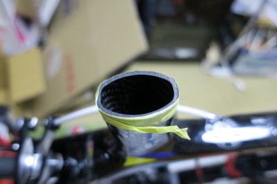 買ったお店(ツルオカさん)に行って、シートポストとステアリングコラムをカットしてもらいました。