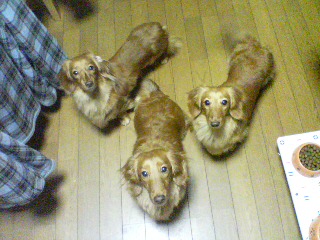 我が家のミニチュアダックス達3匹は寒さにも負けず今日も元気です。フードは朝晩の2回ドッグフード(ラム&ライス)を食べています・・・が・・・最近 白ご飯も大好きな事に気づきました。たまに炊飯器の底に残ったご飯とかをあげるんですが ふと見るとジェニファー嬢がお弁当を付けてました