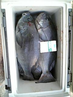 日曜日にクラブのチヌ釣り大会に参加してきましたご近所さんのクラブの仲間3人で深夜に出発チヌの大会なのに何故か僕は餌に活きアジを追加予定通りに和歌山県は湯浅の港に到着です競技説明・くじ引きの後乗船僕はHさんとM君と3人で磯上がりしました。僕以外の2人は磯にあがるとそそくさとチヌ釣りの準備僕はまずイカ釣りの準備を終えてからチヌ釣りの準備です。あたりの無いまま時間は過ぎます。チヌもイカも全くです電話で他のメンバーにも連絡を入れますが釣れていないようですその時M君の竿が曲がり釣れてきたのは40センチを少し切る良く肥えたチヌ気合も入り打ち返しますが私にはベラしか釣れてきませんしばらく後 Hさんの竿が大きく曲がり釣れてきたのは45センチの立派なチヌ結局チヌは全体でこの2匹しか釣れずに大会は私の両どなりの2人が1位と2位と言う結果に終わりました・・・でも・・・イカは込み潮に入ると同時に当りがあり1キロくらいを1杯ゲットその後3キロ位はありそうな大物イカを水面まで浮かせましたが残念のドロンでした。帰ってイカはお造りとゲソのイカ焼きにしていただきました。ご馳走様でした