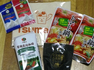 ツメコムさんの無料詰め放題コースにて、送料のみで送ってもらいました沢山詰め込むことができ、楽しかったですホッとタイム 根菜と大豆こんにゃく麺のごま坦々風スープ:電子レンジで温めるだけなので簡単、便利。麺は少なめですが、スープがとても身体を温めてくれて美味しいです。コクはありますが、こってりしすぎてないのが良いです。イチビキ トマト鍋スープ:さらっとしたトマトジュースのような素ですが、鶏肉、白菜やきのこを入れると、しっかり味が付き、とても美味しかったです。更に、最後にご飯とチーズを入れると最高のリゾットが出来上がりましたファームランド・フレーバーコーヒー3箱:下記にて。ヤマモリ ギャバ醤油&ギャバつゆ:醤油は、お刺身に使用したり、煮物を作ったりしています。つゆは、卵とじうどんにしました。とても美味しくて、手軽にギャバが摂れるのが良いです。さわやか苺のモコドーム:甘酸っぱいいちごのチョコがとても美味しいです。あっという間に食べました。また購入したいです。APPLETISER / アップルタイザー:以前から爽やかなアップル味の酸味と炭酸がちょうど良くて大好きです。お酒代わりにも。POM「愛媛みかん旬ストレート100」:酸っぱすぎず、甘みと酸味のバランスが取れた美味しく、飲みやすいジュースだと思いました。安心な味です。ボルヴィック フルーツキス レモン:ほのかな甘みとレモンの香り。普段からミネラルウォーターは良く飲んでいます。とても飲みやすく、ほのかなレモンの香りでリフレッシュできます。ジムにも持って行きたいです。BADOIT[バドワ]:「フランス発」スパークリングナチュラルミネラルウォーター:炭酸がちょうど良く、ボトルも素敵。以前からジムへ持って行ったりしています。今後も飲みたいスパークリグウォーターです。ミニトマトのスープ 一人用180g:熟成醗酵 黒蒸しにんにく&熟成醗酵焙煎粉 玄三郎:メープルナッツグラノーラクッキー2ヶ:ジムで小腹が空いた時に以前から利用していました。メープルのほんのりした甘さとちょっぴりねちっとした食感がお気に入りです。旬菜ごぼうあっさりしお味:職場のおやつに持って行き、どんな味かドキドキでしたが、あっさりした牛蒡の味がしっかりして病みつきになる美味しさでした。 <ユニコ・ジャパン・インターナショナル>さんのファームランド・フレーバーコーヒーをピックアップしてみました●無糖タイプです。だから健康・美容に気を使う方にも安心して飲んでいただけます。1杯あたりのカロリーは約5Kcal(ファームランド2g使用、ブラックの場合)●デザートのような香りはミルクとの相性が抜群です。●お菓子の材料やトッピングとしても大活躍。 バニラ・キャラメル・ヘーゼルナッツ×各2袋が3箱入っていました。お湯が少なめだと、濃いので、私は、牛乳を入れて楽しんでいますとても良い香りがします甘みは一切無く、自分で調節できるのが良いです。ファームランド インスタントフレーバーコーヒー【アソートメント】6袋入り