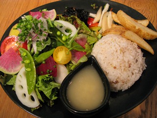 昨日は、以前から行ってみたかった<阿里山Cafe>にてランチしました 高麗川沿いに建つ<阿里山Cafe>は、ベジタリアンオーガニックのカフェです。週末には、ナチュラルフーズを扱うテングナチュラルフーズのお店もオープンします。 私は、ベジバーガーにしましたパテが分厚くてボリュームがあり、パンがこんがり焼けててとても美味しかったです綺麗に飾られたケチャップを付けると、普通のバーガーと変わらない美味しさで、大満足でした こちらは、阿里山ミックスベジタブル丼。野菜をたっぷり摂ることができます きのこと季節の野菜カレーです。 本日のスープ。 ハイビスカス&ローズヒップティー。 涼しい日は、テラス席が気持ち良さそうです。行った日は、とても暑かったので、中の席に座りました。 ナチュラルクッキーをテイクアウト。しっとりタイプで美味しかったです次回は、あったかいりんごパイと豆乳アイスクリームを食べてみたいです この日は、思いがけず、テングナチュラルフーズもオープンしていたので、食材を色々購入することができ、嬉しかったです。我が家からは、少々遠いのですが、店員さんの感じがとても良く、お料理も美しく、とても気に入りました。また是非行きたいです。阿里山cafe関連ランキング:カフェ | 高麗駅