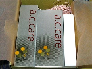 "ミツバチ毒"(Bee Venom)を使用し、ニキビ(ふきでもの)の原因菌を洗浄することにより、健やかでスベスベなお肌を保つためのニキビ・スキンケア化粧品「BB.a.c.care」シリーズを使用中です。 昨日の日記に書いた「a.c.care ベノムクレンザー」に続き、韓国で話題の成分、ミツバチ毒の肌再生効果で肌トラブルケアとエイジングケアができる化粧品「a.c.care ベノムエッセンス」を試してみました"ミツバチ毒"成分が肌を清潔に保ちながらうるおいを浸透。ヒノキ水やハマメリスなどの天然成分をたっぷり配合。肌に必要な成分のみを届ける特殊なスプレータイプ。液だれせず、均一に広がる霧状の超微細なミスト状。最後まで新鮮な状態をキープする二重構造容器を使用。ローズマリーとグレープフルーツのほのかな香り。 使用してみると、今まで経験したことが無いほど細かなミストスプレーです優しく、すごく気持ちが良いです。細かいので、メイクの上からスプレーしても崩れたりせず、問題ないのが嬉しい。使い続けていくうちに、肌が滑らかになっていくのが分かりました。【大ヒット韓国コスメ】TV・雑誌でも話題のミツバチ毒コスメ!accareミューズは、注目の韓国アイドルLPG(エルピージー)ベノムエッセンス(エーシーケアシリーズ・化粧水)ブロコミモニターに参加しています
