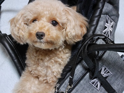 design fさんのmarshmallow bagを初めて購入してみました。サイズを迷いましたが、トイプードル2.6kgのきなこは、Sサイズで大丈夫でした 届いてすぐに入って居心地が良さそうですとても軽いのにびっくりしました