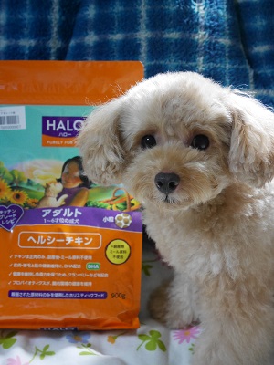コジマさんのハロー アダルト 小粒 ヘルシーチキン 900gを試してみました トイプードル2歳、2.7kg、きなこです。食欲はある方ですが、すぐに食べなかったりします。チキンは正肉のみ。副産物・ミール原料不使用皮膚・被毛と脳の健康維持に、DHA配合成犬の健康な毎日に適切な栄養バランス平たく食べやすい小粒サイズ 小粒でとても食べやすそうです。お肉やブロッコリーをトッ゜ングして食べることが多いです。ハロー アダルト 小粒 ヘルシーチキンの食いつきは、とても良く、あっという間に食べてしまいます。美味しい様子です。コジマ通信販売ファンコミュニティファンサイト参加中コジマ通信販売オンラインHALO(ハロー) ドッグドライフード