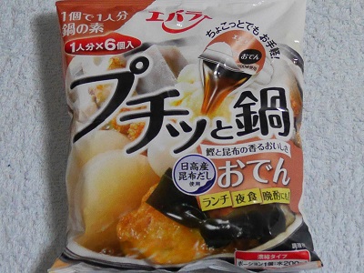 先日、サンプル百貨店さんのイベント、第54回リアルサンプリングプロモーション in 品川へ行きました 今日は、<エバラ>さんのプチッと鍋 おでんを紹介します うすくち醤油をベースに、焼津産鰹節と日高産昆布の旨味を効かせ、やさしく上品な味わいに仕上げました。22g×6個なので、少量から量を調節できるのがとても便利です。 当日のランチタイムとお土産に1袋いただきました。味付けがとても良く、気に入りました