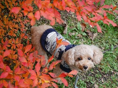 トイプードル きなこ です。今日の散歩。最近、文句を言わずに着てくれるようになったお洋服。去年買ったお気に入りのニットは、ピチピチに。脱ぐのが大変でした。