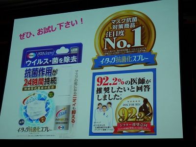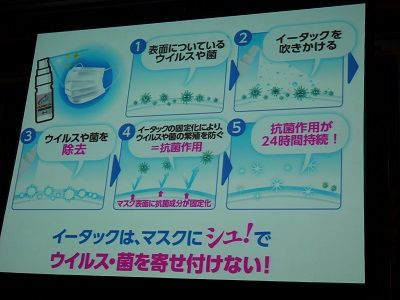 マスク表面の菌なんて考えたことがありませんでした。1日8回以上も知らず知らずのうちに触り、ウィルス菌がうようよしているそうですびっくりマスクの気になる匂いも防いでくれるそうです。