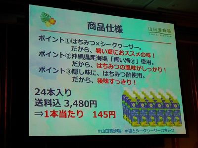 はちみつ屋が満を持して作った、はちみつドリンク。香料を使わず、はちみつとシークヮーサー果汁に塩とはちみつ酢を加え、爽やかに仕上げました。後味さっぱりでごくごく飲める、熱中症対策としてもオススメのドリンクです。