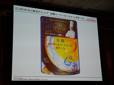 フレンチの鉄人坂井宏行が監修した、贅沢な素材感を楽しむ冷製ご褒美スープです。さわやかな甘さが特徴のスーパースイートコーンを使用し、野菜(ミルポア)の上品な旨みで、コーンの美味しさを一層引き立てた、ワンランク上の贅沢な味わいです。北海道産クリームで、コク深くなめらかに仕上げました。