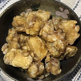 1.鶏もも肉を一口大に切り、片栗粉を全体につけます。
