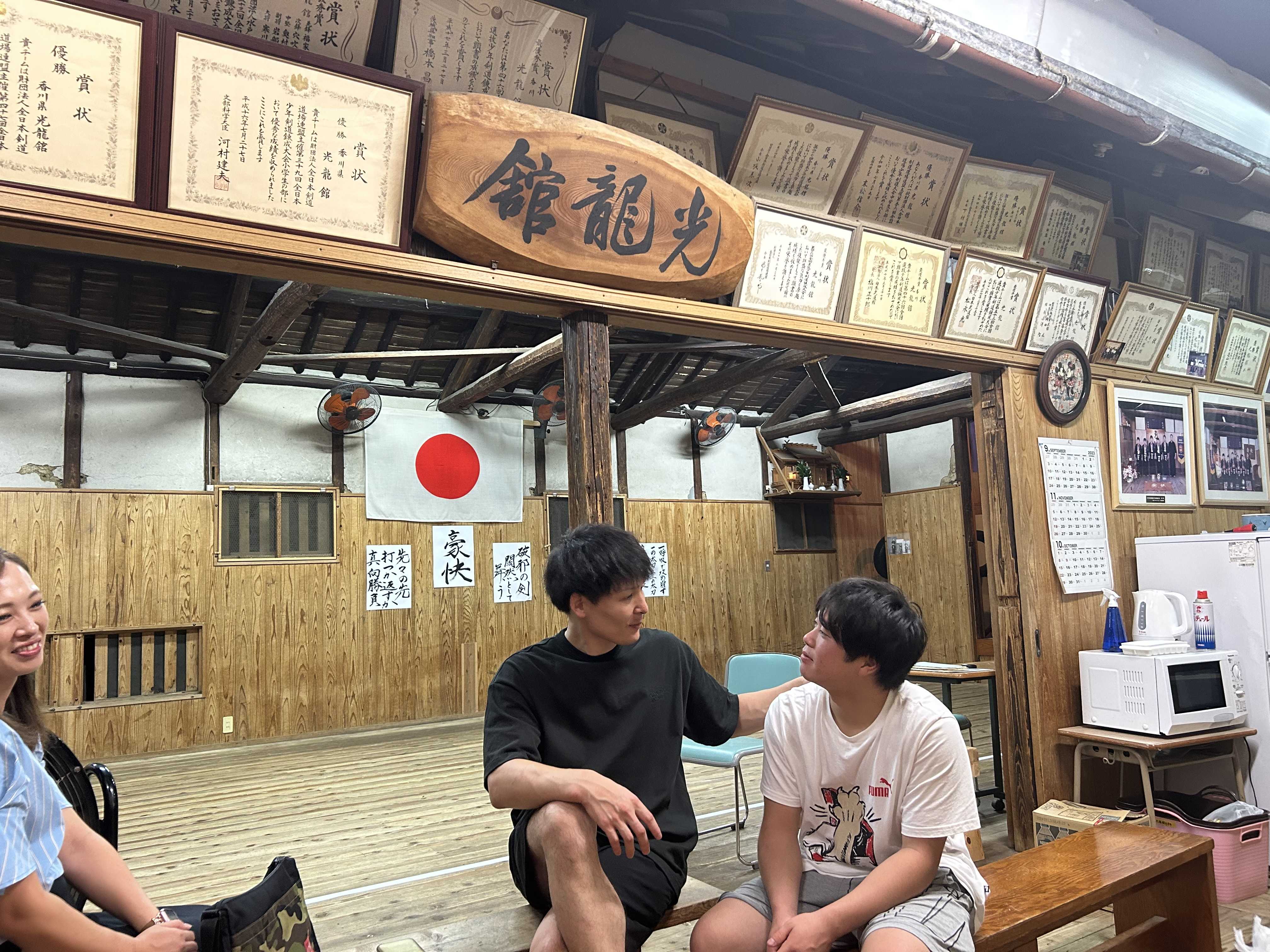 光龍舘にて山下先生から優太へ何の話なのかな?? 岩部先生お勧めのマルタニ製麺で最初の食事 エビ天 香川県中学生選抜(都道府県)VS光龍舘ドリームチーム(優太が副将で) 光龍舘の予定表に書いてありました^ ^ 仲良しなんですよね〜 勉強になりました‼️次回の稽古から、色々取り入れたいことがいっぱい🤔