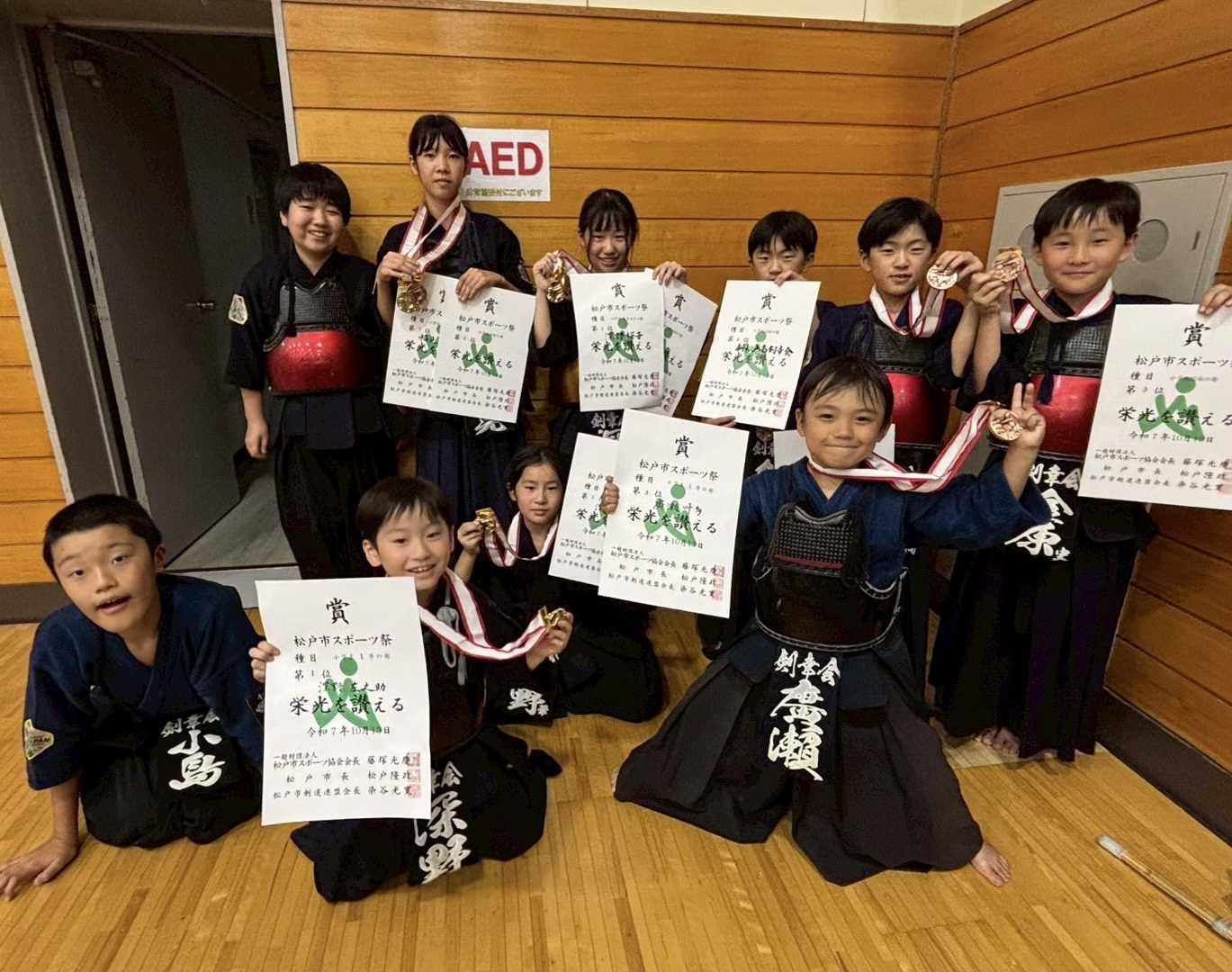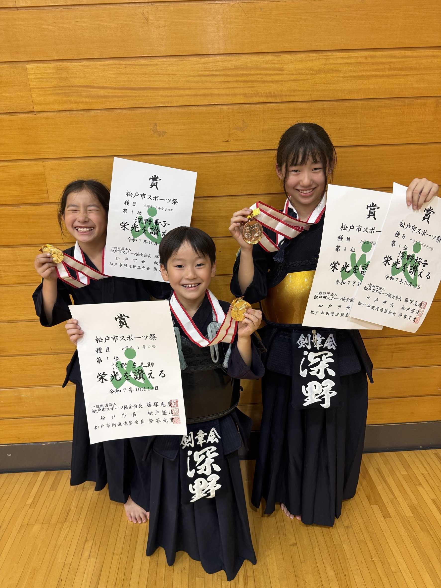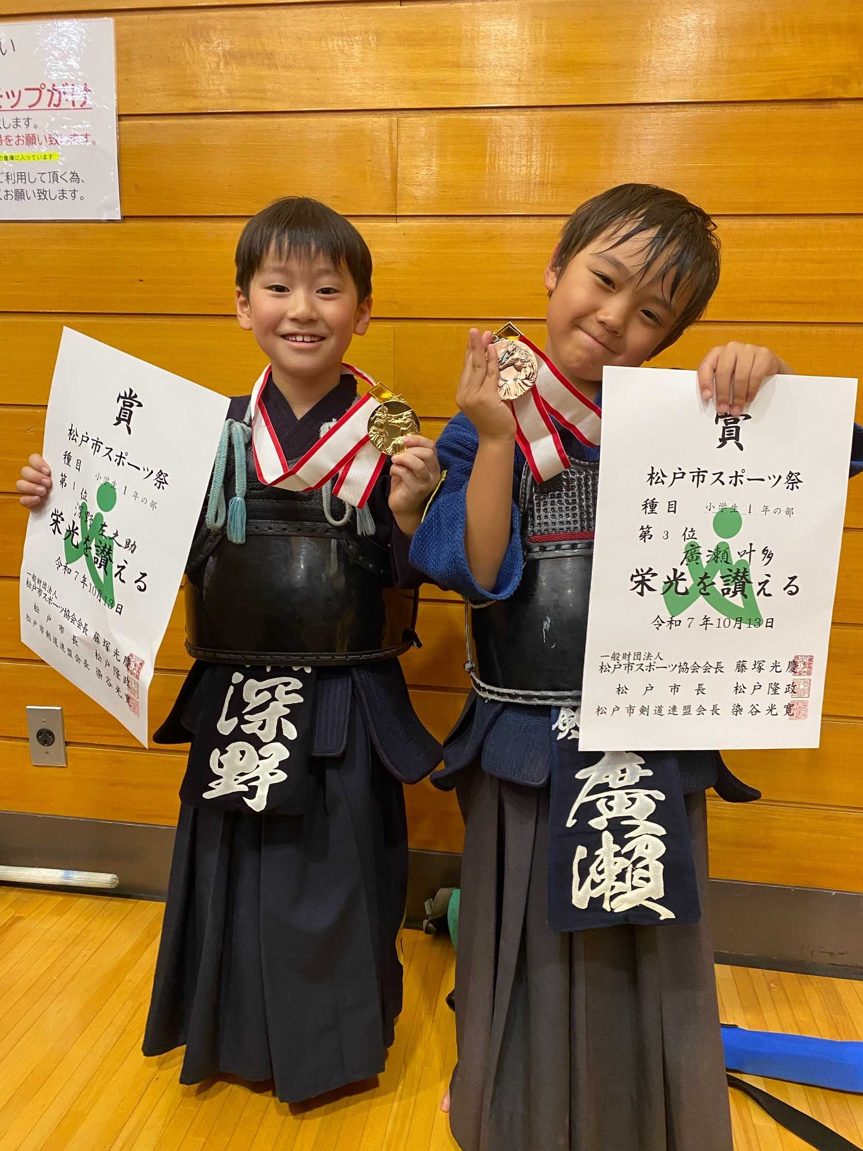 個人部門(剣幸会道場からエントリーのみ掲載) 左之 小学1年男女 優勝🥇 叶多 〃 3位🥉 華子 小学3年女子 優勝🥇 桜子 小学5年女子 優勝🥇 優衣 小学6年女子 優勝🥇 悠希 高校生男子 優勝🥇 悠以 高校生女子 3位🥉 成菜 〃 3位🥉 垂井 一般男40〜64 優勝🥇 館長 一般男65〜 優勝🥇この他、小学生4年生男子、6年生男子、一般39歳以下の3部門に出場。合計18人が個人戦出場しました金メダル🥇7つ、胴メダル🥉3つ という立派な成績でしたね!中学生は今回団体戦のみ出場で個人戦のエントリーはありません小学生男子も入賞はなりませんでしたが、紙一重の試合でした。どちらに旗が上がるかの違いです。小学生女子は3人全員が優勝でしたが、レベルもなかなか高くて、素晴らしい内容でした🤗垂井先生と私もなんとか優勝できて、ホッとしてます。私の個人戦出場は、市民大会はこれで最後になります🫡写真を頂いてるので、載せますね❗️小学1年生コンビ 優衣ちゃんは初優勝! 高校女子 来年は三年生だから、是非! 新設された65歳以上の部 (65歳の記念に出場)来年からは監督に専任します🙇