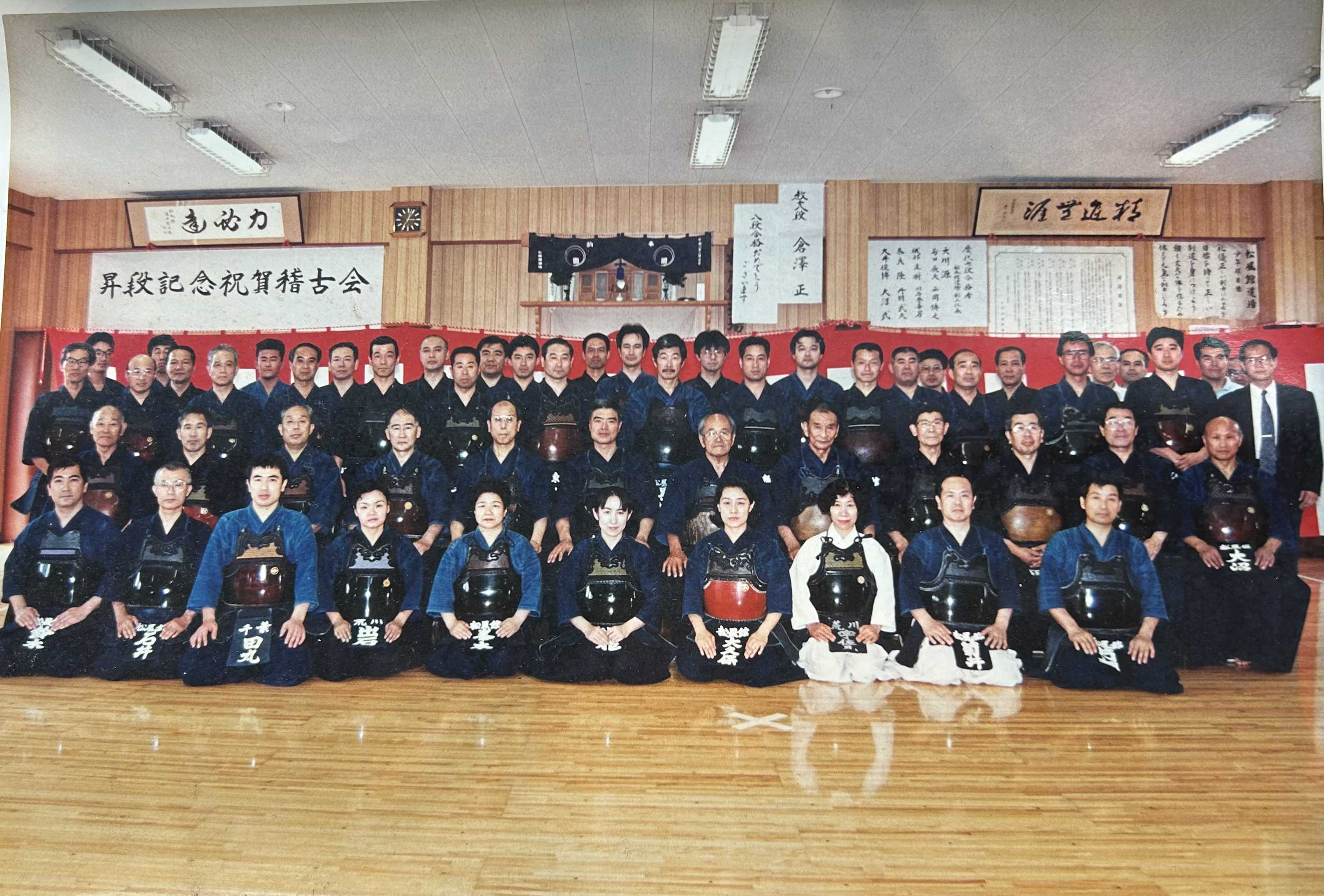 2025.10.21.なんか、父親の葬儀より、悲しかったな倉澤先生の八段合格祝時の稽古会 皆んな若いネ すごいメンバーです私の前は滝口範士(岩立先生の先生)、その2人右が島田先生(励のおじいちゃん)ど真ん中が倉澤先生で、左隣が岡先生、岩立先生は左端から2人目ですね。 東京オリンピックの垂ネーム 供花