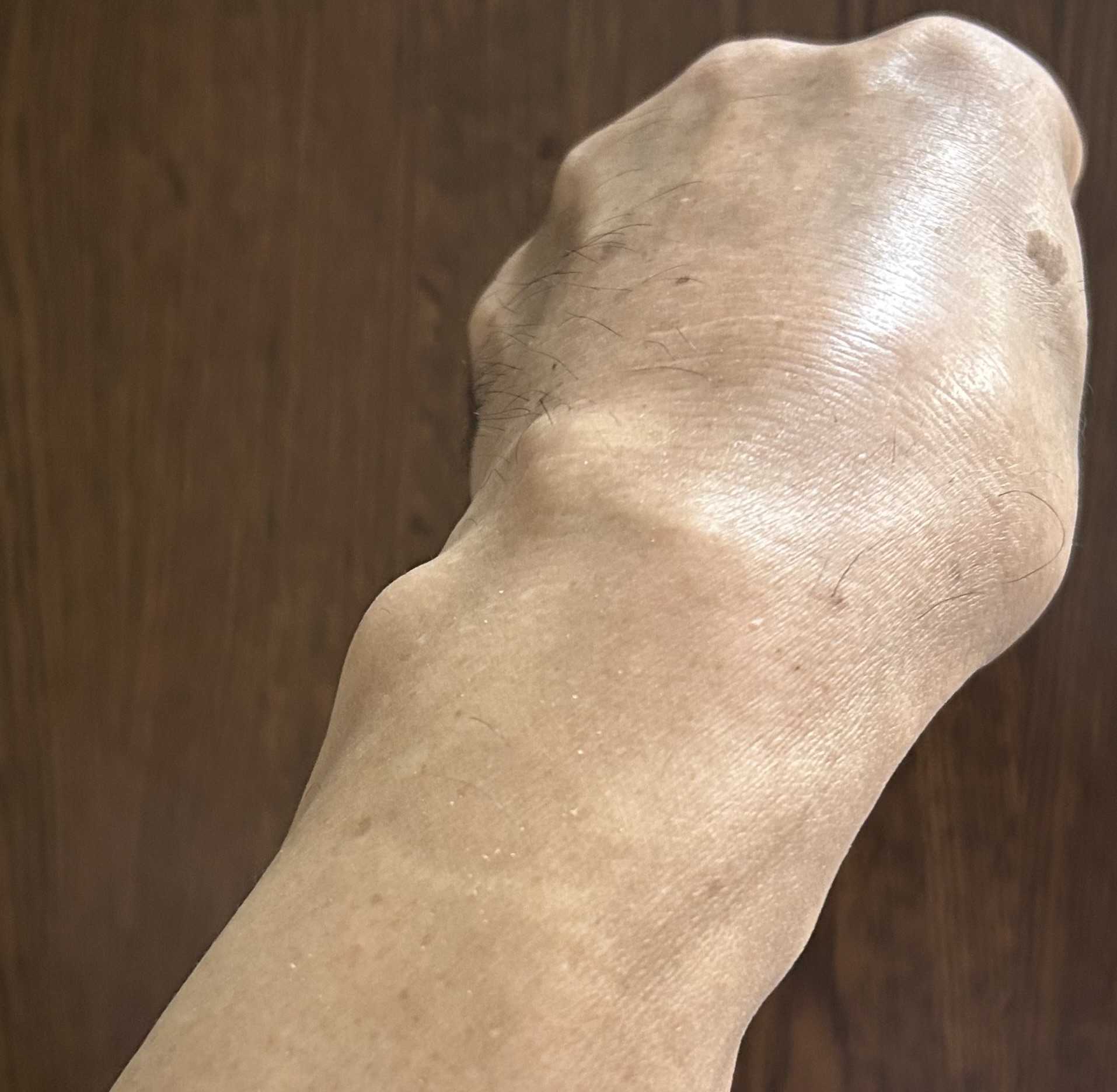 古傷ではあるんですが、、日曜日から出稽古の予定してたけど、手首の違和感が強くて回避。ただ夜の剣幸会では防具付けて1時間ほど。テーピング+サポーター2つで始めたけど、途中でサポーターは一つにしてました。特に問題なく最後までできました。しかし、、翌朝、手首が動かなくなってました💦いつもよくなるんだけど、、今回はいつもより重症みたい主治医の整体の先生の判断は、手首にガングリオンが入り込んじゃてるんでは?ですプラス、土曜日の後から変だから、ちょっと使い過ぎかとは思ってます。1週間後にエントリーしてる試合をどうするか思案中🤔また、2週間前に剥離骨折+捻挫の洋介は、今日から稽古再開らしい。17日の県民大会は迷惑かけるからと辞退して、急遽選手変わってもらってます。私同様、11月は昇段審査が控えてますし、身体は動かしていたいのでしょうね。若いから劇的に回復早いねー現在の左手首 私のガングリオンは、20台半ばからの付き合いです大きくなる度に強圧で潰してましたが、、今は小さいのができるんですよねーここまで痛いのは初めてだから、捻ったのではないか?が自己判断ではあります🤔ガングリオンの悪さなら下の感じですねーどっちが主かな。。両手首にテーピングをしないで、剣道することは最近はまず無いんですよ。予防だけど。。一番痛めてたのは20歳の時で、試合いっぱい負けました。この時は右手首。体当たりで痛めたんでしょうね。 ということで、明日明後日は防具付けませんので、ご了解ください🙇